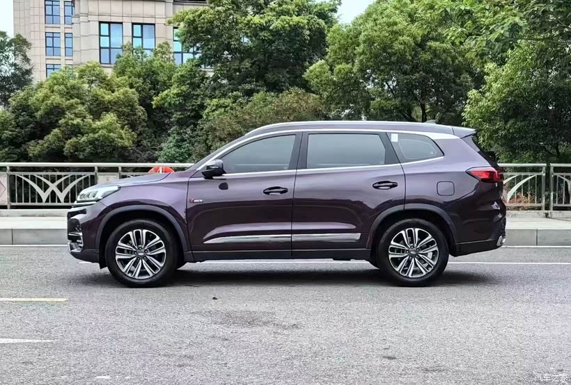 车身侧面延续了中型SUV的舒展比例,4700mm的车长与2710mm的轴距,悬浮式车顶设计搭配车窗上沿的镀铬饰条,从A柱一直延伸至D柱,提升了侧面的高级感与流畅度。车门下方的黑色防刮护板与18英寸多辐式铝合金轮毂,兼顾家用SUV的实用性,又增添了越野风格的硬朗气质,侧身线条简洁利落,无论静态停放还是动态行驶,都呈现出协调稳重的姿态。
