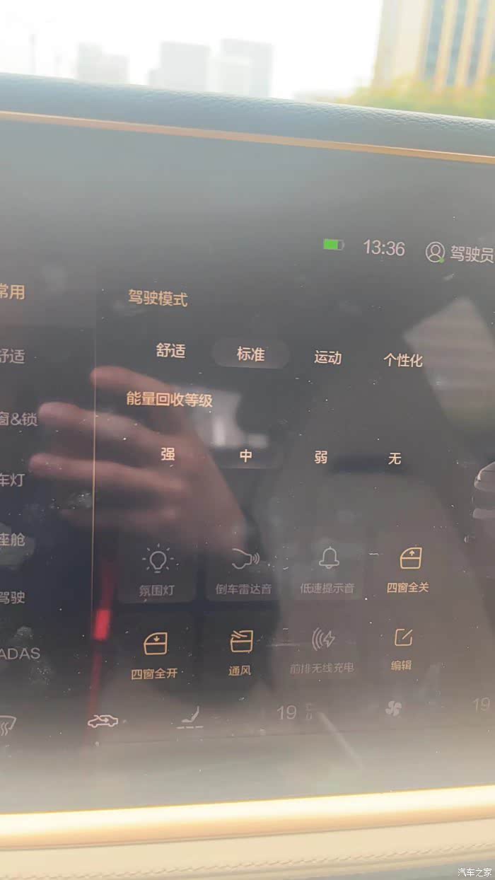 这台车的动能回收等级有4个等级,强中弱无,强动能回收,就类似于特斯拉单踏板模式,用电门控制速度,但是恒驰5,电门全部放掉之后,是不能完全刹停的,等红绿灯还是要踩刹车。这样比较安全一点。弱和无类似于汽油车,可以无缝衔接的那种。个人习惯使用动能回收中。也不需要频繁踩踩车,也能很好的控制车速。开起来还是比较舒心的。