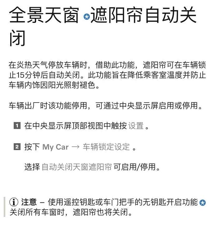 还可以在设置里设置成锁车15分钟后,如果气温超过30度就自动关闭天窗遮阳帘。