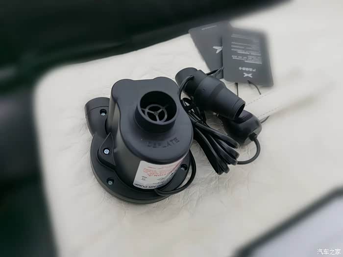 中间的一个有“三叉”logo的是一个多功能USB接口(最大输出电流2.1A,电压5V),他除了正常供电外,还可以传输数据(比如插U盘听本地mp3音乐),车载麦克风通讯连接、游戏手柄等等。最右边有个盖子的接口就是传说中的“点烟器”接口了,虽然是12V,但是支持180W的最大输出功率,目前发现最大的两个作用,一个是使用充气泵(睡眠空间气垫床充气、轮胎打气)。