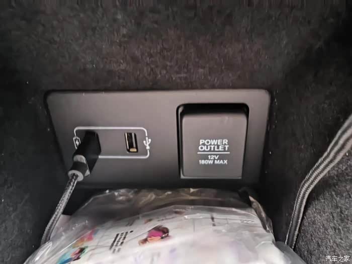 在就是后排座椅中间头枕的后方,也有一个“点烟器”接口,同样支持180W功率输出。
