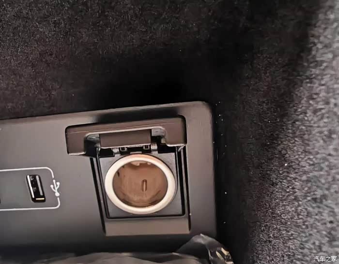 打开中央扶手箱里有三个接口,两个USB,一个点烟器接口。