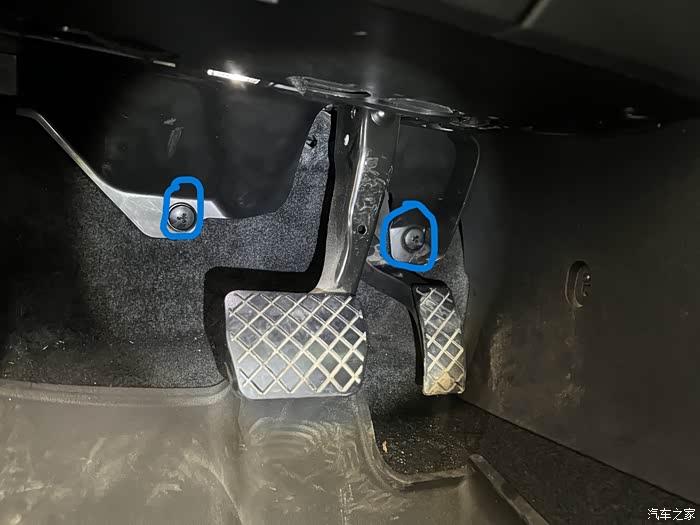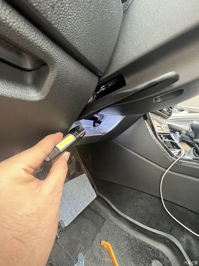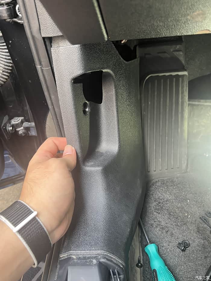 j965模块连接线束比较难找,在刹车踏板上方,原车卡扣是灰色的,就找这个灰色就行。这个完全同款接头转接,不多赘述。我拍了下位置,各位车友看下能看清么:
