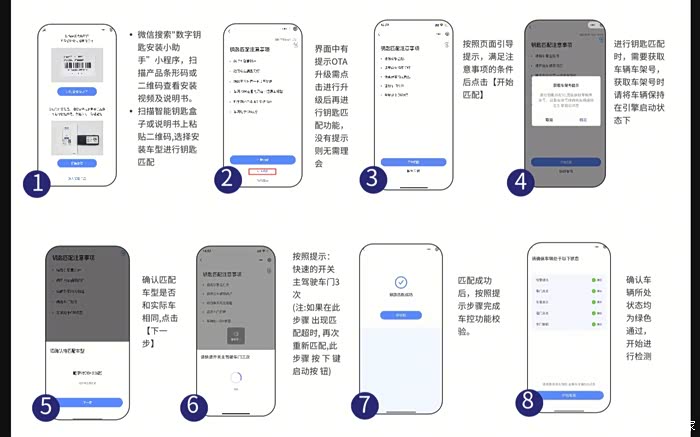打开数字钥匙安装助手小程序,输入购买设备时卖家给的经销商激活编号,选择车型,连接蓝牙进行匹配。
