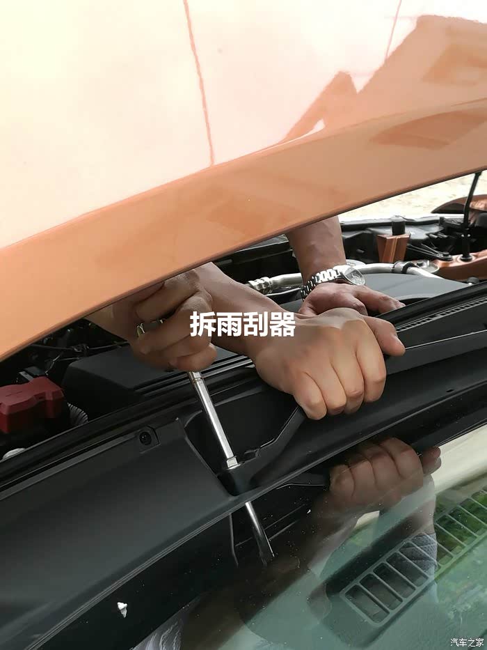 1、用大头笔记录雨刮器停止位置,免得装回去时位置不对,影响刮雨效果!