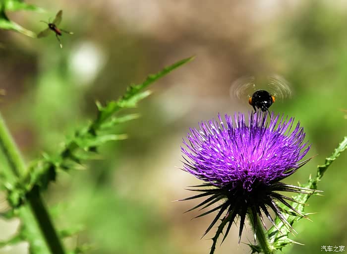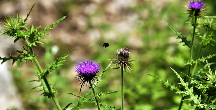 小蜜蜂在花朵间飞来飞去。