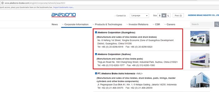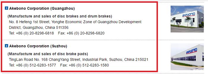 网上查到的Akebono 广州公司信息 你可以联系一下
