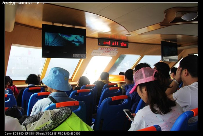 上船之后就有人发呕吐袋,船颠簸的比想象的厉害,偶尔有做游乐场海盗船失重的感觉,快到时有个孩子喊了句“怎么还没有人吐啊”,引得笑声一片