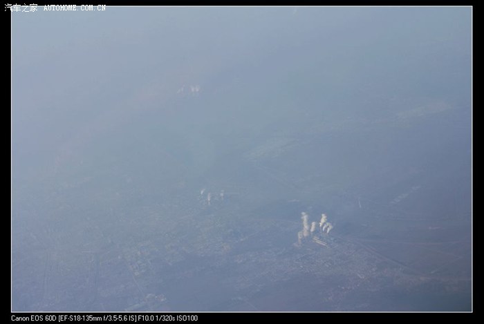不知道到山东了吗?反正空气明显浑浊,地面除了那几处冒烟的烟囱明显外别的看不清