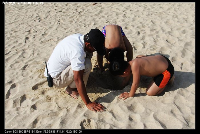 酒店的工作人员很好很耐心,陪孩子们在挖螃蟹