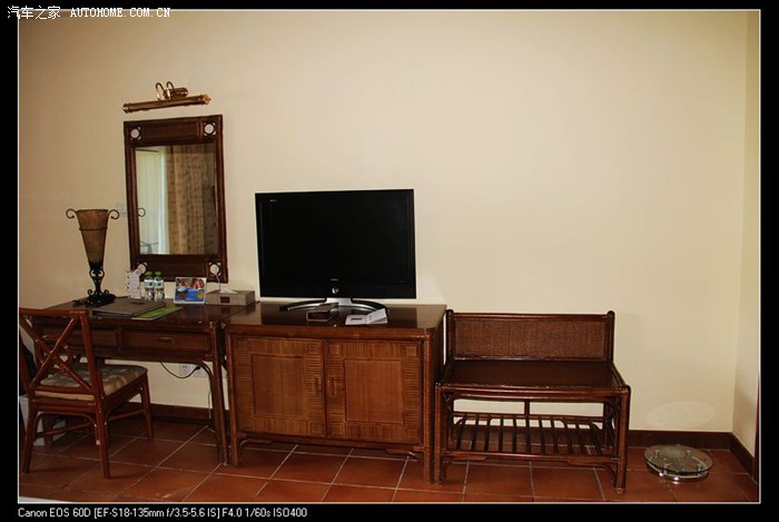 依旧是藤制家具,电视可以收看凤凰卫视和几个国外频道,毕竟是四星级酒店嘛