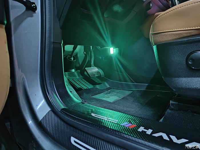 为了打破原有的单调,我还为哈弗猛龙加装了七彩脚底灯。七彩灯光随着音乐的节奏变换,不仅增加了车内的娱乐性,也让整个车厢变得更加生动有趣。这种光影的变化,让人仿佛置身于一个流动的光影世界,驾驶体验也随之升级。