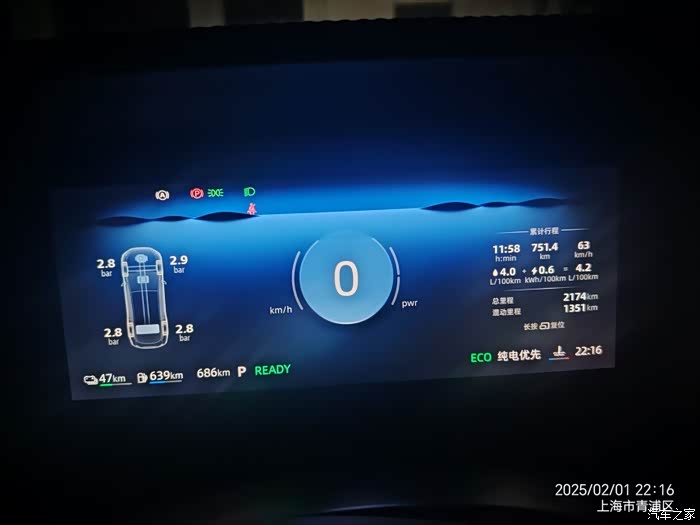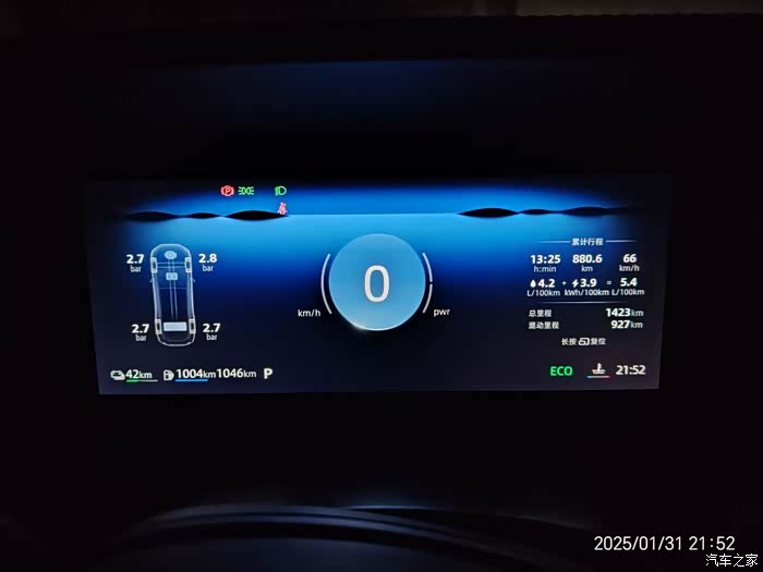 2月1号我又跑了一次,山东泰安出发,目的地上海,国道30公里左右,剩下的都是高速,由于堵车,路上走走停停,结果油耗就这样了,所以我得出一个结论,你要想省油就保持时速90以下,不乱加速,就4个多,时速100以上就会5个油,我要不是堵车我都出不来这油耗。路上除非特别堵车,要不然电根本用不完,我都是发动机发的电多了就切换纯电,到20纯电了就切换混动,来回往复。这点我还挺满意的。