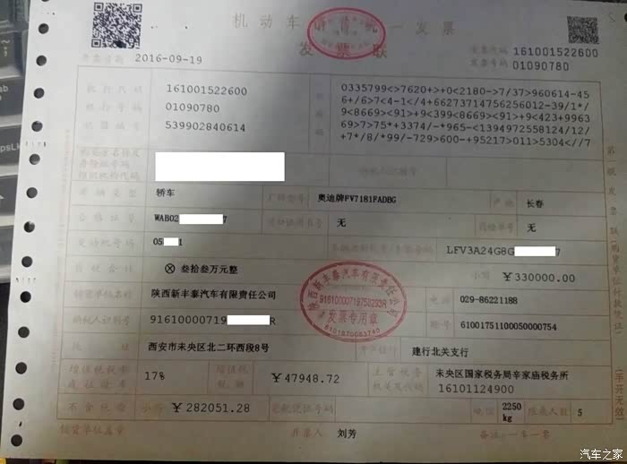 11号下午快4点,去了西安北二环的4S店,简单的谈了一会,18T技术型32.8万,全景天窗,18寸轮毂轮胎;我的凯越置换+贷款。我的凯越置换3.8万到3.9万,厂家补贴价格了。贷款70%两年,手续费1.5万(利息9600多),加装饰1.2~1.5万。第一场谈判结束。
