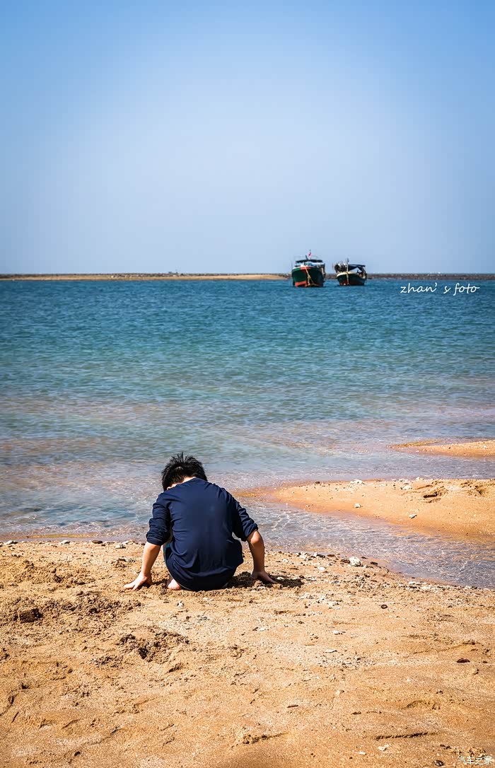 惊喜的到来时第二天了,早晨我一睁开眼就看见了蓝天白云,于是我立马叫醒儿子和媳妇,准备去南极村的灯塔附近游玩,同时也通知朋友在那里汇合。由于去的早,我找到了树林里的一块绝佳地,把车开到树下,然后孩子们就开始玩水,玩沙,这时候才是我印象中的海边,浅蓝色的天空,湛蓝的海水,柔软的沙滩,以及身后的南极村灯塔,一扫昨天的阴霾。在合水线处,等到退潮的时候会露出一条长尾沙滩,从无人机角度看,真的不输薄荷岛。