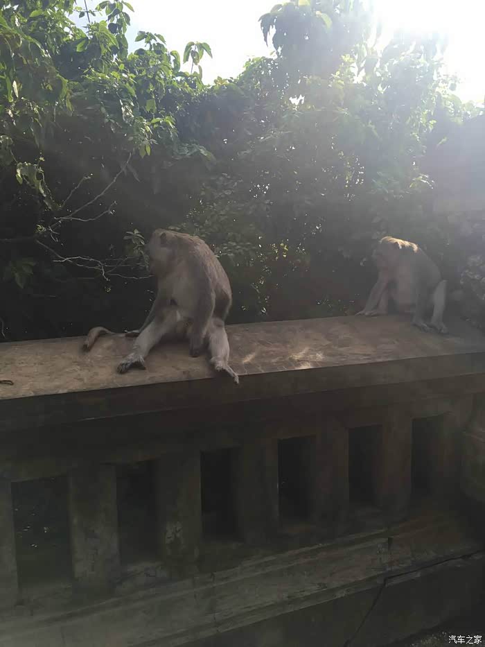 这里有很多猴子,大家要小心猴子抢东西,像帽子眼镜之类的尤其要保护好。