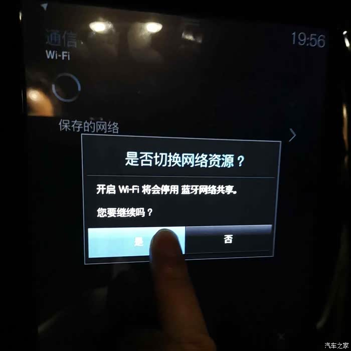 从刚刚蓝牙共享网络切换至调制解调器联网,出现是否同意切换的提醒界面,选择“是”