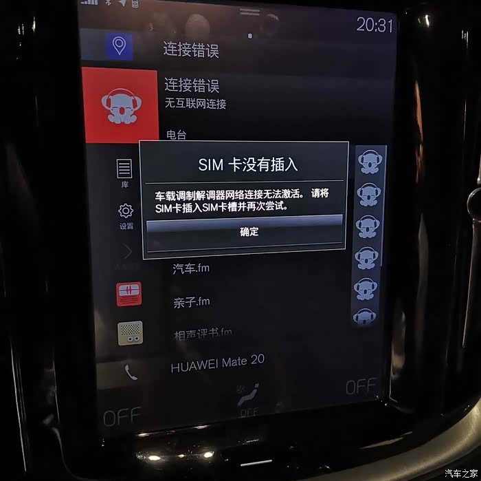 插入电信4G卡过一会儿显示信号还很强,看画圈的地方。插入电信4G卡后,尽管信号强,但在线地图和网络电台都显示“连接错误”,网络功能不可用,也就是说上不了网