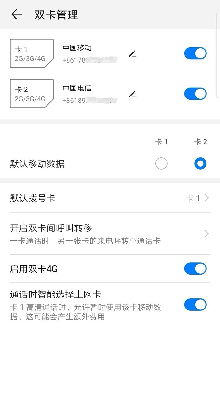 因为我手机里有移动4G和电信4G两张卡,下面,我就用移动4G和电信4G卡亲测一下