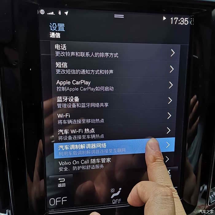 点击“通信”,再点击“汽车调制解调器网络”