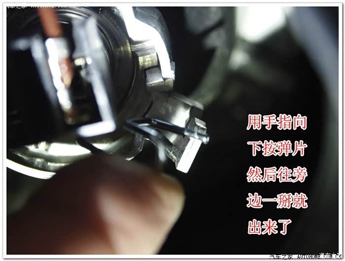 楼主,看了你提帖子后,我也决定DIY换灯,问题是那个近光灯我怎么都取不下来,旋转也拧不动,说有卡扣朝里按也没有动静,不晓得怎么拆下来,求助....