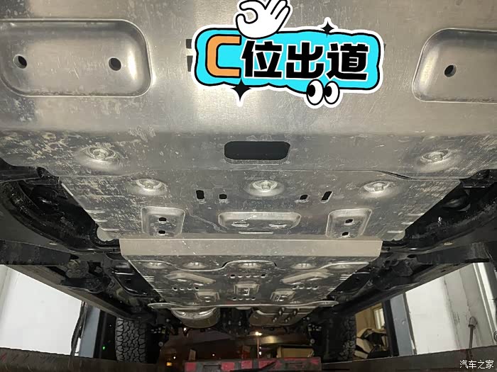 安装完成后,我发现了一个弊端,这个下护板不能像原厂护板紧贴在大梁的横梁上,它向下走了3厘米,也就是变速箱到分动箱的这个位置的离地间隙少了3厘米,在不升高的情况下通过性有所降低。