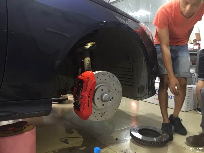 这套刹车改了之后我太满意,磨合了2个星期终于有效果,140一脚刹车可以点到80码,由于避震比较软,点头比较厉害,估计后期避震改了之后更加舒服