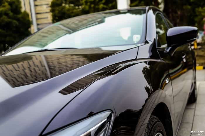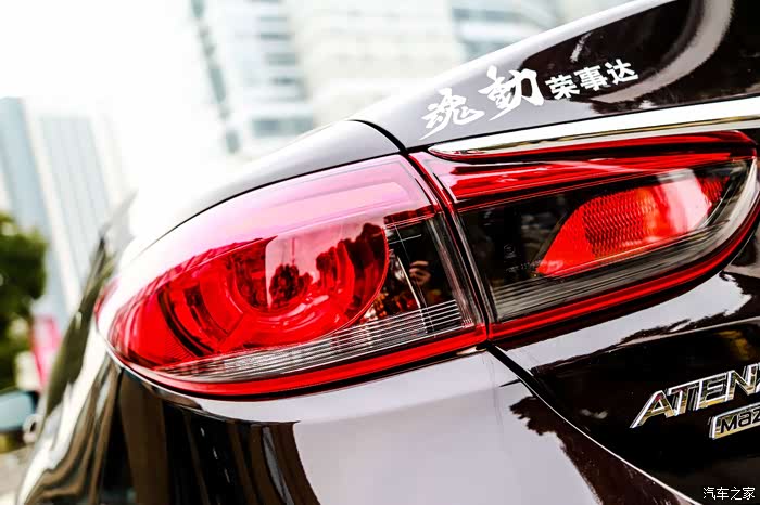 首先整个18款阿特兹的外观设计依旧延续了家族式的魂动设计,扁平的前脸,全系标配的LED天蝎眼大灯,修长的侧面车身,车身处的线条十分突出,车头比较长,我买的颜色叫“紫晶檀”,因为我觉得红色烂大街,而白色的话不耐脏,所以就选了这个很特别的颜色,具体哪里特别呢,这个叫“紫晶檀”的颜色在暗处看上去是黑色的,而如果是在阳光下或者亮光下就会显现出来是深紫色。