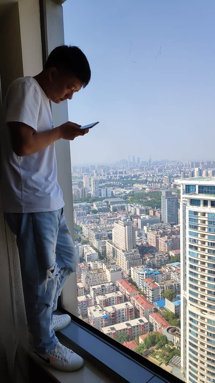 “没,我就试试45楼高的位置看手机是啥感觉。。。”