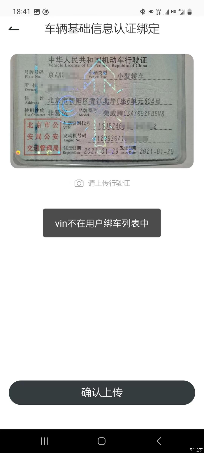 我在手机荣威APP我的→爱车权益里面上传行驶证时,提醒vin不在用户绑车列表中,大家遇到过吗?