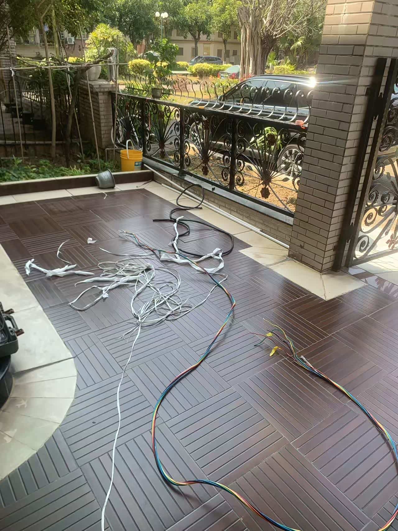 从电表引出线缆沿院墙固定,穿管时避免直角弯折。接地线单独接入院内地桩。