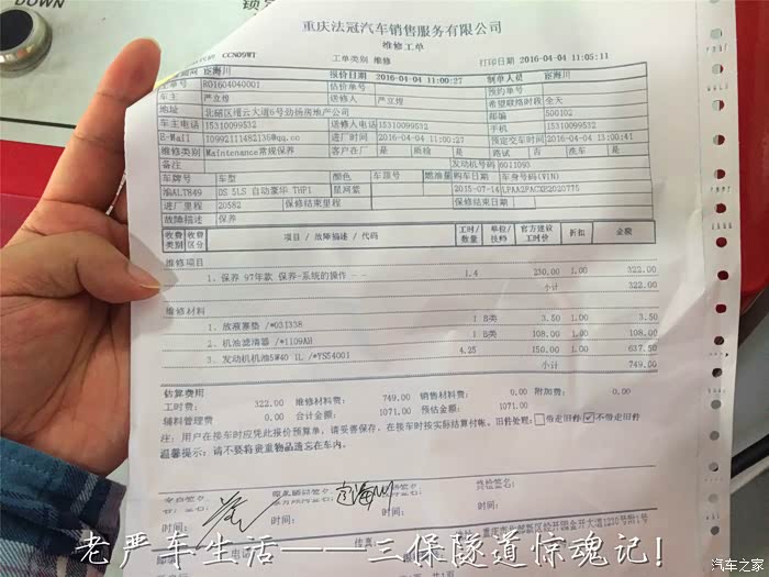惊魂未定的我,再指挥前两车挪出一个缝隙后,我便前往法冠去做保养了。车开出隧道我才发现我的衣服被汗湿了。