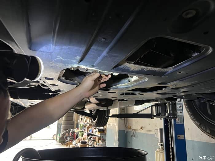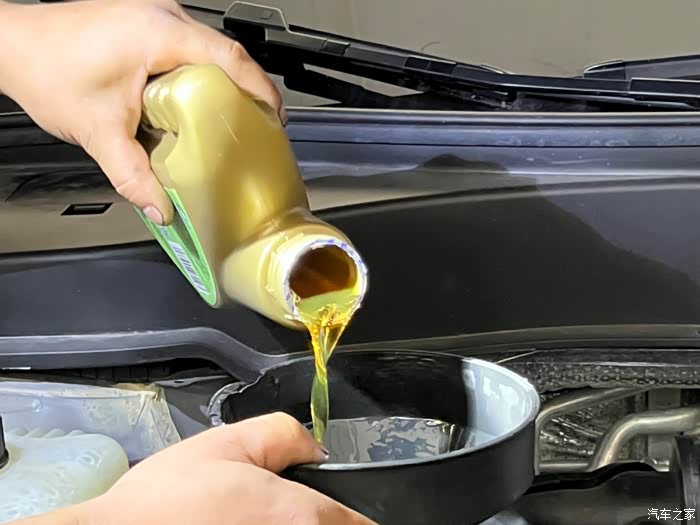 因为公里数较少,保养也比较简单,放完油,检查完轮胎胎压,上好新的机油格后就开始加机油了