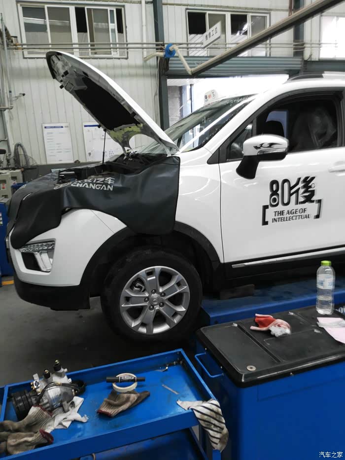 等师傅们把该换的都换了,该加的也都加满了,小妖要再次被升起,师傅说把车子启动,然后看看有没有漏的或者是松的地方,要在仔细检查一边。