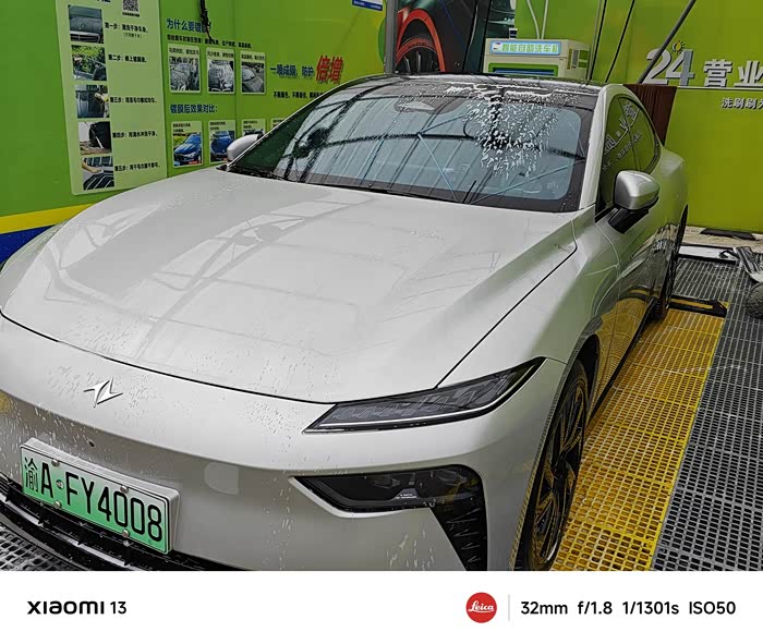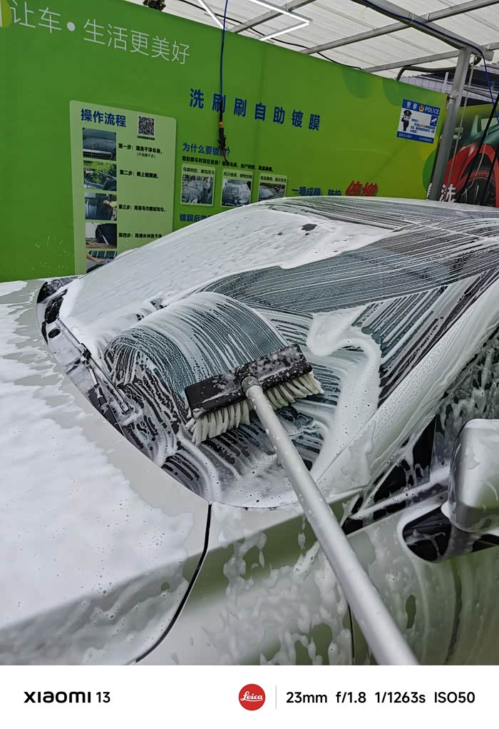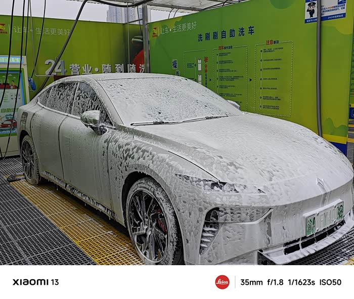 好,现在洗车就大功告成了,看着自己洗干净的eπ007好心情翻倍,相当帅。
