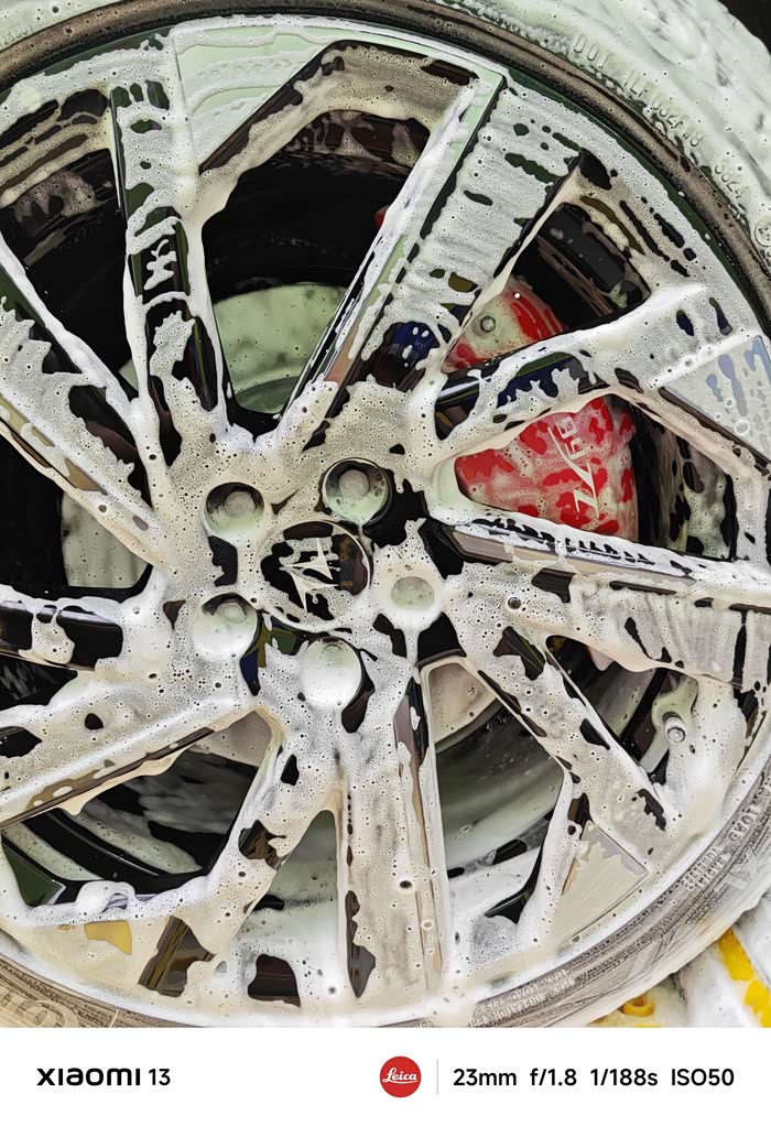 4.第四步:再喷一遍泡沫。这次要喷的仔细,包括各个细节的地方,轮毂、后视镜、尾翼等细节地方