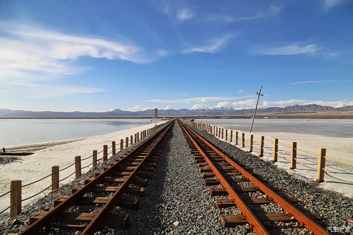 茶卡盐湖154平方公里,是固液并存的卤水湖,湖水下面是石盐层,最厚15m,平均5m,现储盐量据说可供全国人民使用约85年。这种观光火车,可以搭乘从茶卡盐湖门口一直到湖中间,可以单程票也可以往返票,据工作人员说到湖中间有两公里多。我们没有乘坐火车,慢慢溜达进去,其实挺近的,不到两公里。