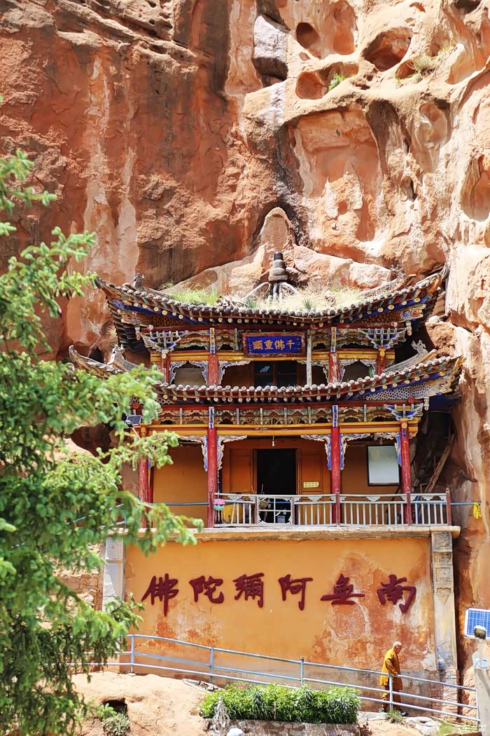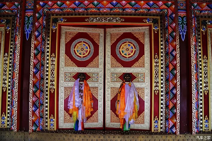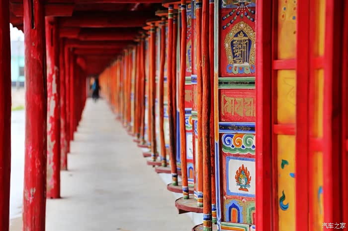 阿柔大寺外有一圈转经筒,转经的藏人虚幻的背影充满意境。