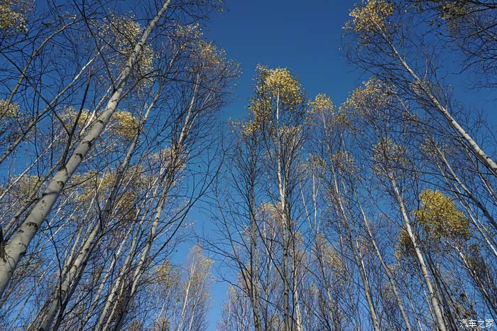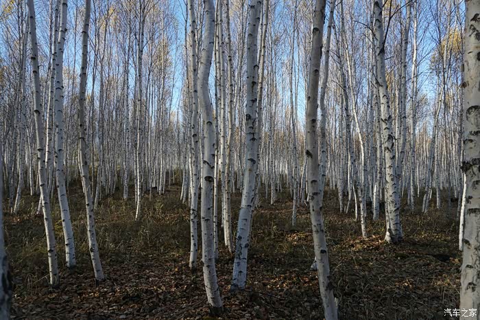 蔚蓝色的天空的衬托下,空气清爽,白桦林更是让人赏心悦目,真想打个滚儿,与大自然来的亲密拥抱.......