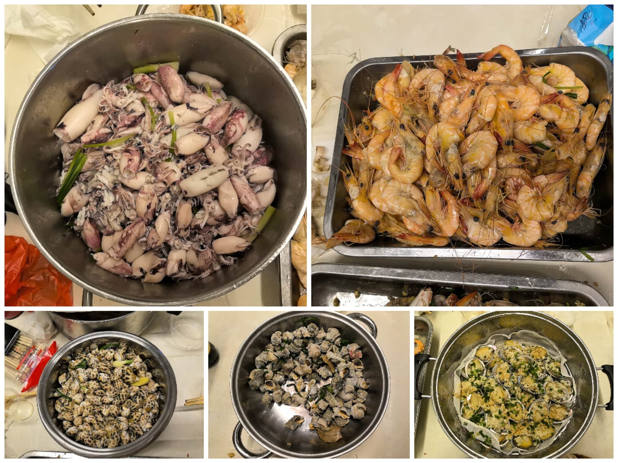 夜幕降临,我们的重头戏——海鲜盛宴开始了!赶去阿姨那里拿回来的海鲜新鲜得不得了,有皮皮虾、花蟹、麻虾、香螺、辣螺、黄花鱼、红鱼、小鱿鱼等等,量大管饱。