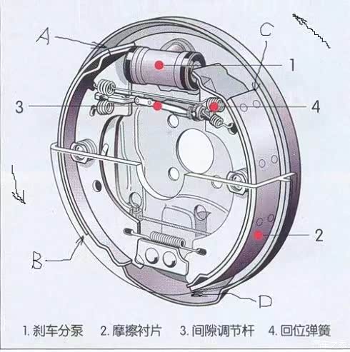 ?️?️首先我们了解下鼓刹的结构及工作原理。鼓刹的结构主要由刹车底板、刹车分泵、刹车蹄片以及与这些部件相连的有关连杆、弹簧、梢钉和刹车鼓等组成。鼓刹通常安装于车辆的后轮,具有较高的绝对制动力。当踩下刹车踏板时,刹车总泵内的活塞会推动刹车油向前移动,从而在油路中产生压力。这一压力随后被传递到每个车轮的刹车分泵活塞。刹车分泵的活塞进而推动刹车蹄片向外,使其与刹车鼓的内面发生摩擦。这种摩擦产生的足够摩擦力会降低车轮的转速,从而实现刹车的目的。