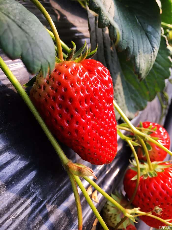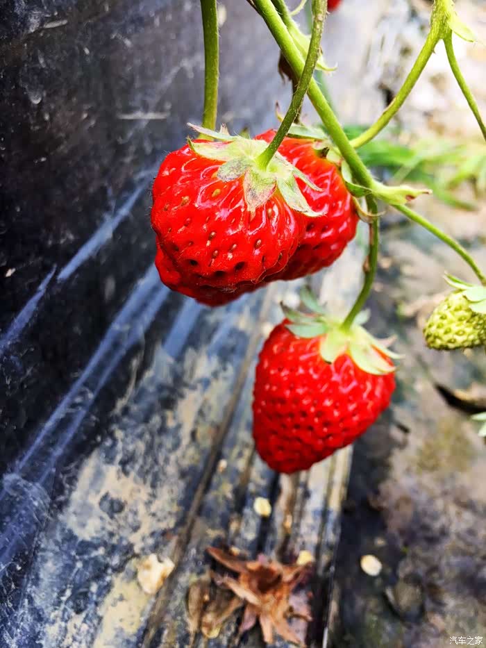 三颗草莓都红透了,不错