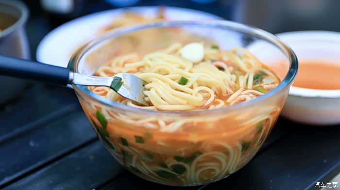 除去这些主菜之外,我们会备着一些方便存储、携带的食物,有些车友会图方便,弄个小锅煮方便面,这个以前我们也吃过,不过这个一般都是应急吃法,不能经常吃,而且口味会比较容易吃腻。我们最近经常带一些意大利面,各种调料齐全,煮一煮,比方便面好吃多了。