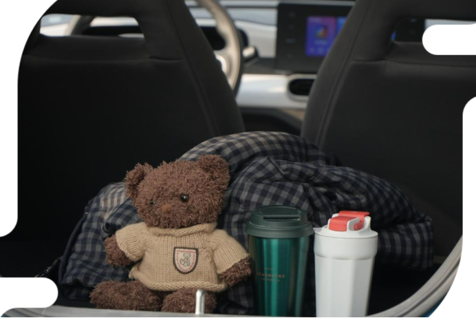 孩子的水壶、零食、备用衣服,还有妈妈的包、购物袋,都能找到合适的地方放。我姐还在车里放了小垃圾桶和纸巾盒,一点也不显得乱。后备箱空间日常够用,孩子的滑板车、足球这些都能放下。