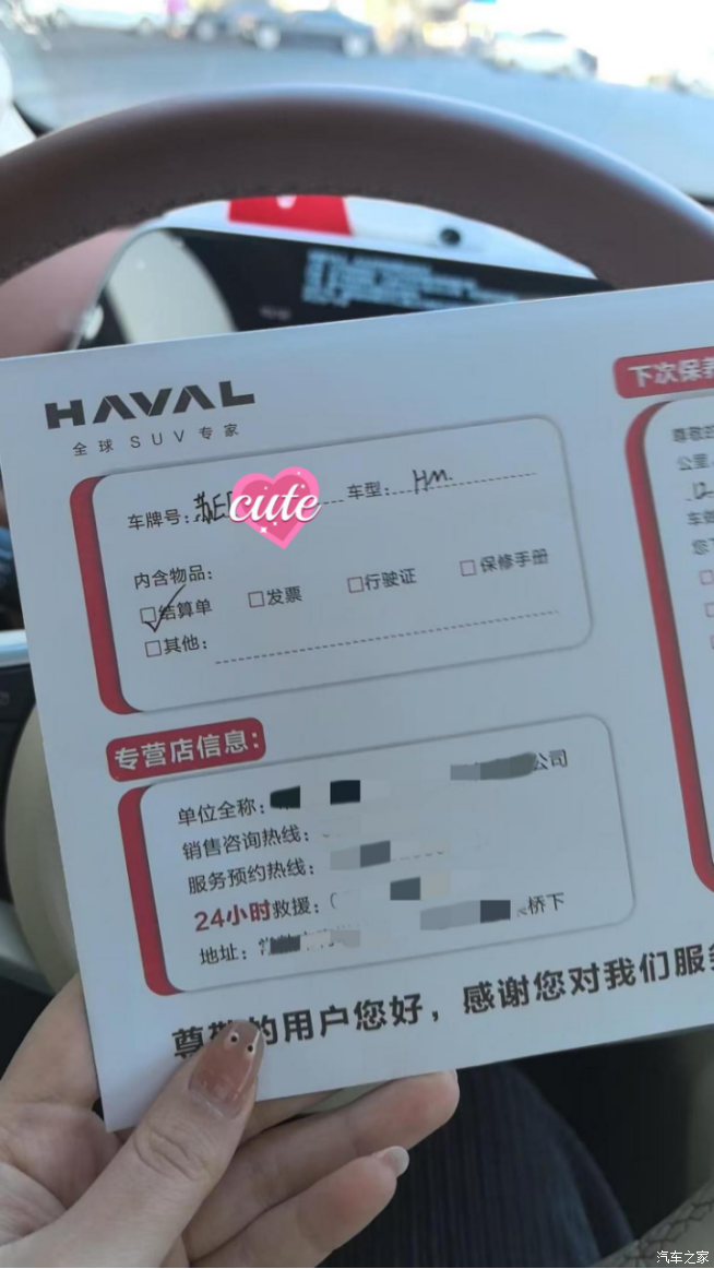 我是在买车的4S店首保的,听了售后才知道欧拉可以在全国任何一个4S店就近首保,这次跑远了,还没保养的姐妹注意了,可以约着离家近一点的店保养,下次保养是在现在的公里数基础上+1W公里。