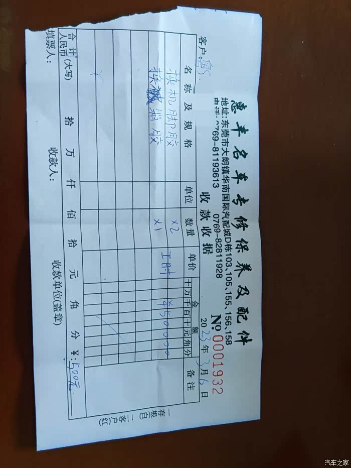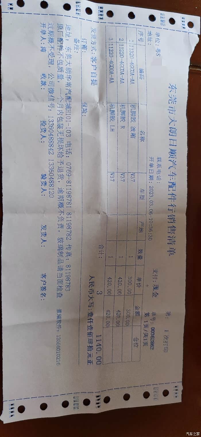之前因为加速异响和振动问题去4S店检测过,说现机脚胶不是原厂件,要更换原厂件,但配件加人工报价好几千,太贵了。于是自行去汽配城,买了以上原厂机脚胶件,3件一套,共1140元。其实此时心里没底,不知花这钱能不能达到预期的效果,心里忐忑不安。顺便问了汽配店员工,经他们推荐了旁边专业的汽修店。