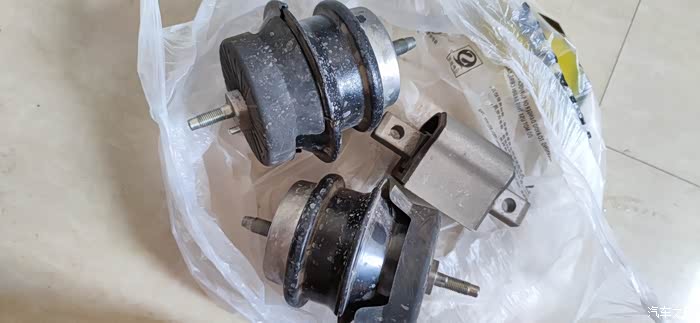 这是拆下来的非原厂3件套,从外表真看不出问题。这套垃圾机脚胶有车友想要的,可以免费赠送。拆装过程没拍照,大概花了三小时,中间去外面吃了个烧鹅饭。重点是换机脚胶时,一定要师傅用千斤顶平衡托着发动机更换。
