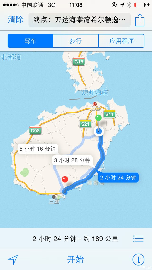 晚上三亚---海口 (273公里)行驶 3小时37分钟 环岛高速