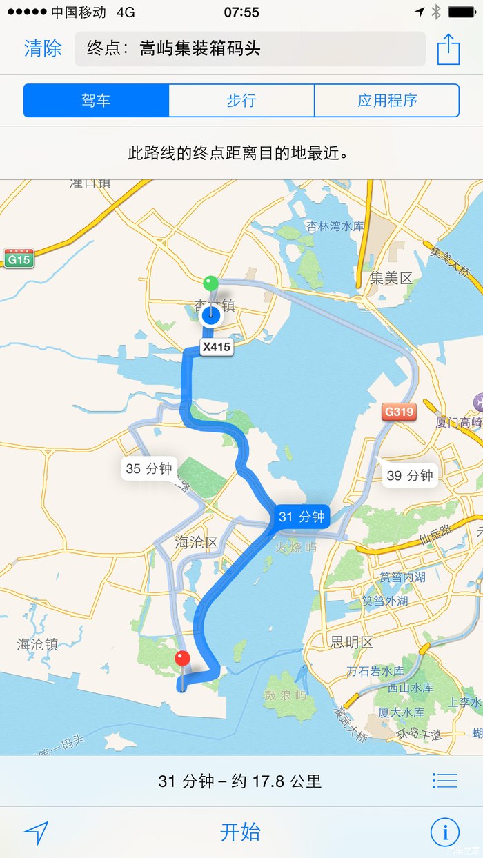 厦门嵩屿码头----莆田少林寺(南少林)(183公里)行驶 2小时38分钟 G15