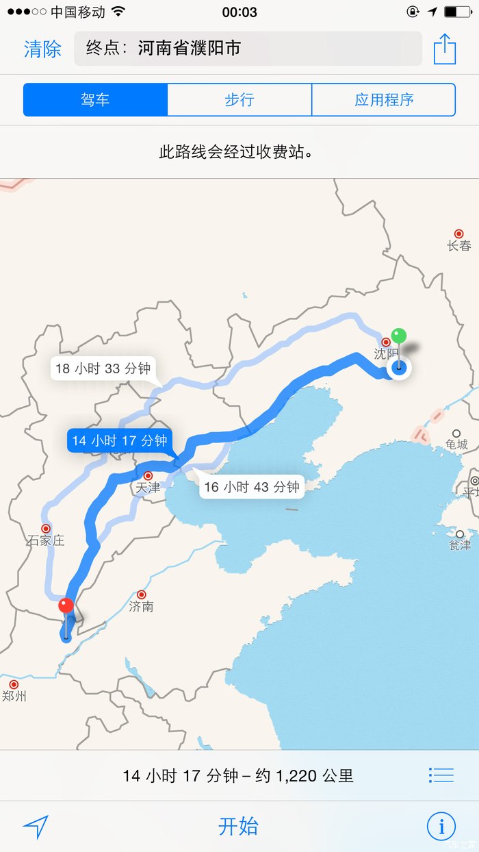 第一天 辽宁本溪-----河南濮阳(1220公里)行驶 14小时16分钟 G2501(滨保高速)